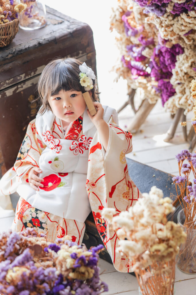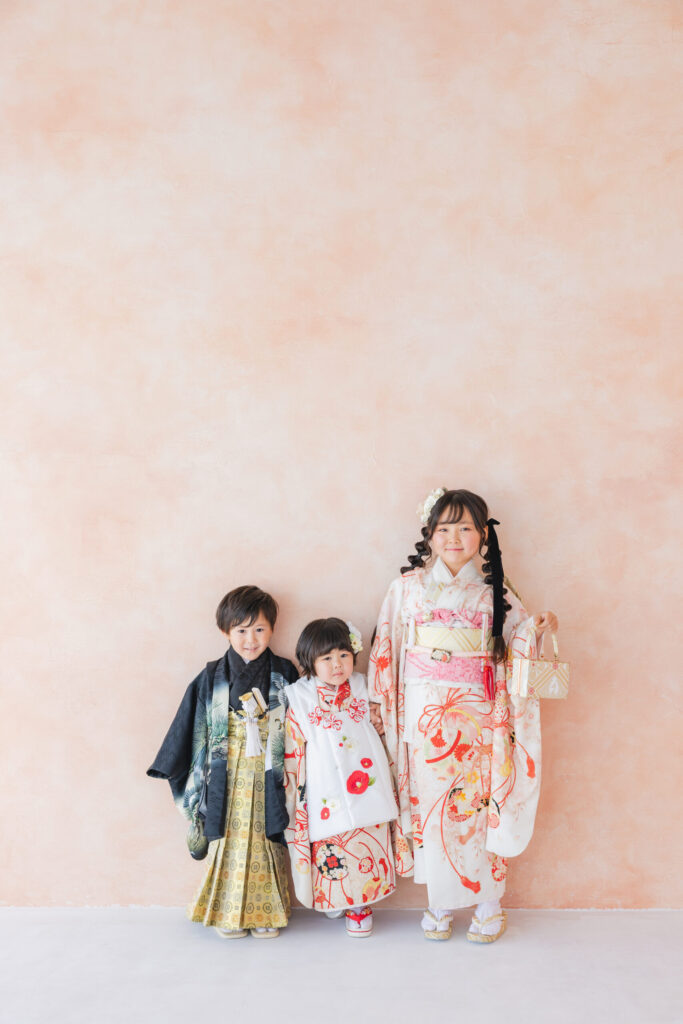 下の子二人の753撮影、全員の着物のお写真が欲しいとのことでヘアメイクしてお写真を撮りました